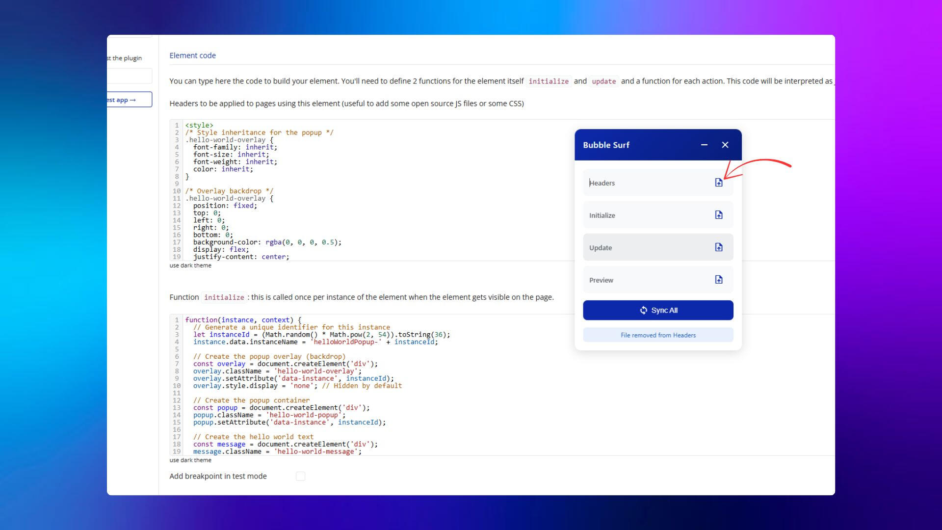 With one click, watch your code appear in Bubble's Plugin Editor.